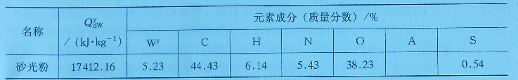 (1)砂光粉的組成。砂光粉組成與工業分析,如表7-1所示。