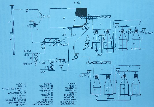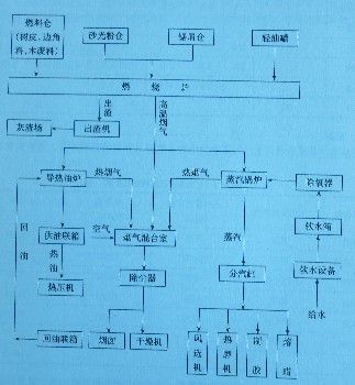 (1)砂光粉燃燒系統:砂光粉料倉一定量螺旋一輸送風機一止回安全閥一砂光粉燃燒裝置一燃燒爐。