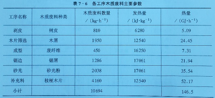 鍋爐房的燃料是利用生產過程中產生的木廢料及補充的枝椏木片,其參數如表7-6 所示。