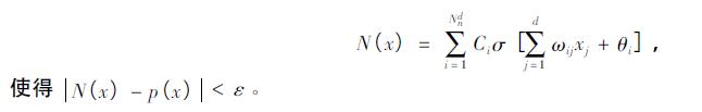 逼近定理[7]設φ在R上具有p+1階連續有界導數,并對任意的k(0"k"p),存在θ∈R,使得φ(k)(θ)≠0,p∈Πdp,則對任意的ε>0,可以構造d個輸入、一個輸出及隱層節點個數為Ndn的單隱層前向神經網絡