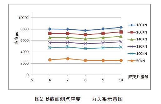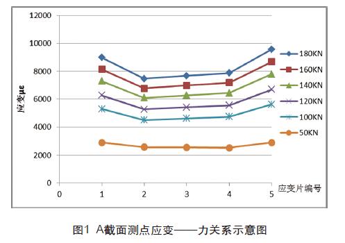 圖中橫坐標為測點應變片編號,縱向坐標為應變值。從圖1、 圖2、圖3各個截面的數據比較可以看出,在錨具張拉出口端附近 的A截面與C截面,邊部纖維應力與中部纖維應力應變差較大,對 3個截面的數據進行分析,靠近錨具端的A、C截面應變差總是會 大于中間B截面應變差,而B截面邊部纖維與中部纖維的應變值差 基本可忽略不計,也就說明了在遠離碳密度板錨固處附近之后, 截面應力分布就趨近于均勻,錨具端的泊松效應分影響布就可以 忽略不計了。